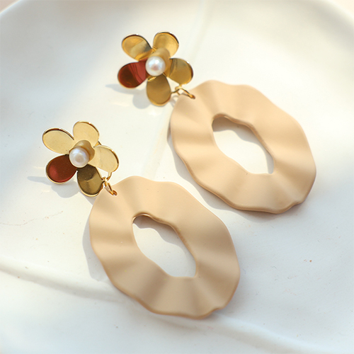 Stainless steel earrings / earpins pearls flower with loop Gold
