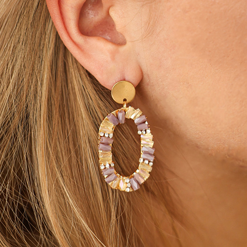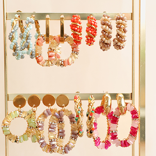 Trendy earrings beaded twisted Multicolour-Gold