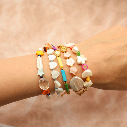 Discover our new collection of shell beads, available in cheerful and calm colours. These beautiful beads bring colour and joy to your jewellery collection. Combine the beads with shell chips, rhinestone charms, and ceramic beads for beautiful bracelets, or combine them with DQ keychains and macrame cord for a trendy phone strap.