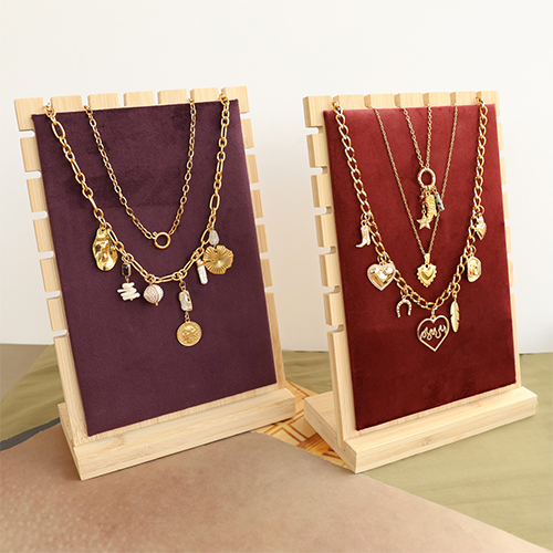 Let your jewellery shine on our new wooden displays! Available in various shapes and colours like light blue, green, and burgundy. Perfect for displaying rings, bracelets, and necklaces. Elegance and style in one, discover them now!