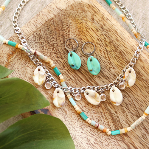 HomeInspirationInspirational SetsSummer necklaces and earrings with resin cowrie shells