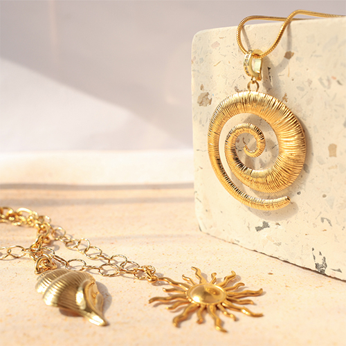 This new collection of large stainless steel charms is a real eye-catcher! Think summary shapes like starfish, shells, or coral—turned into trendy necklaces and earrings. These are must-haves for a bold, sunny collection!