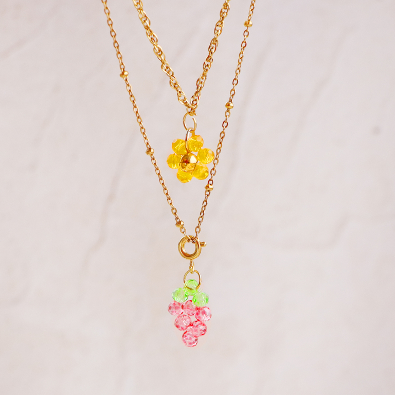 This new collection of popular faceted beads in various shapes, sizes and colours are perfect for some summer jewellery. For example, think about long earrings and sparkling bracelets, or design fruit charms with cherries or grapes and hang them on a pretty jasseron chain >>