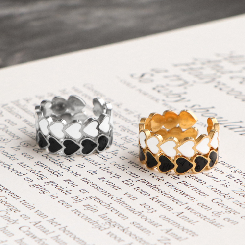 Stainless steel rings enamel heart Multicolour Grey-Gold