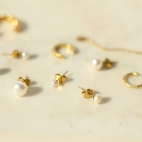 Stainless steel earrings / earpins pearl 6mm Gold-Pearl White