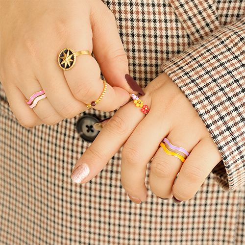 Stainless steel rings Gold-Neon Pink
