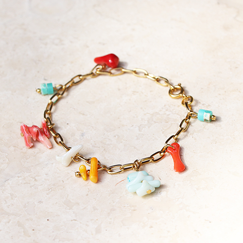 Trendy, tough and a statement! Those are the three words that describe the ‘Mediterranean style’. This stylish trend is full of the most beautiful jewellery items, such as the ocean bamboo beads, chip stones and the Polaris Elements discs. Chunky stainless steel chains and bolt ring clasps are having an important role in this trend. The fun thing about this style is that you can combine materials with different appearances. You can create an eye-catching necklace by combining the ocean bamboo beads with stainless steel beads and a bolt ring clasp. Would you like to make the necklace even more playful? Compose the necklace then with chunky chains, chip stones and a bolt ring clasp decorated with various charms. Design several bracelets and necklaces with stainless steel chains and add a smiley bead of similar material. The stainless steel ready-made earrings dot the I’s of the fashionable outfit.
