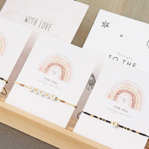 Are you completely in love with those cute minimalist bracelets with beads? Shop the latest trendy Miyuki bracelets with letter beads now. These bracelets are made of macramé bead cord, Miyuki beads and letter beads. Each bracelet has a sliding macramé button. This allows you to adjust the size of the bracelets. The bracelets each have their own text with letter beads and they are available in two different colours. Tip: they are also very nice to combine with other bracelets or to present/gift them on a jewellery card.