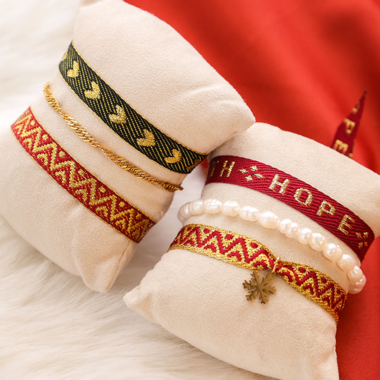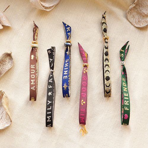 Start by cutting the ribbon to size with a good pair of scissors or pliers, such as the Beadsmith button pliers. Then choose various beads and/or sliders to close the bracelets, such as a smart bead stopper. If you’re making a choker it’s a good idea to use ribbon ends to finish off the ribbon neatly. Combine the bracelets with bracelets made from Miyuki beads, present these on a jewellery card and package the set in a velvet jewellery bag.