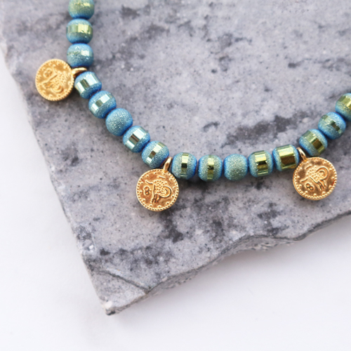 You can make so many different trendy items with this collection of glass beads. To inspire you, we have already made a set of bracelets and earrings. The matt glass beads have a holographic detail in the middle of the bead. The holographic detail gives a unique look. The beads have a shimmering effect and are easy to combine in different ways. We stringed the beads on elastic bead cord and macramé bead cord, which provides endless possibilities. By threading the beads on an eyepin you can use the beads as a charm for earrings. The holographic look is this year’s trend, don’t miss out!