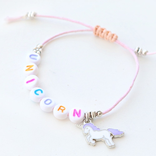 Cheerful kids necklaces and bracelets with colourful unicorns