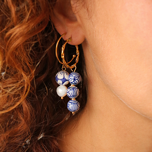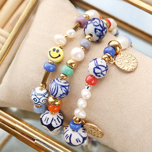 This new series of ceramic beads is extremely suitable for making a unique collection of jewellery. You can use the beads in a bracelet by stringing them together with freshwater pearls, rondelle beads, glass pearls and metal charms for a trendy look. By using a headpin, you can transform the ceramic bead into a charm that you can fix to a necklace or combine beautifully in combination with a freshwater pearl on an earring.