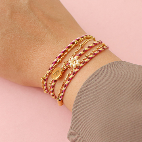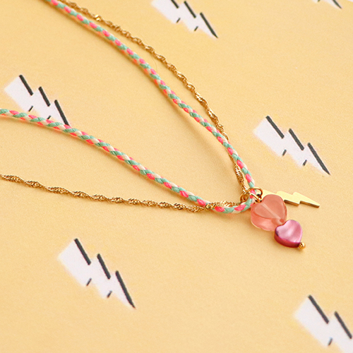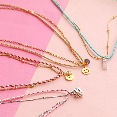 You can easily create a necklace with this braided cord. Wear the necklace around your neck or as a double bracelet or ankle bracelet. Combine the cord with small belcher chains and attach a charm on the middle of the necklace. Use charms from the collection or create your own charms using your favourite beads. Fix the charm on the two necklaces at the same time so they will lay nicely together. Finish your creation with end caps, clasps and extension chains.