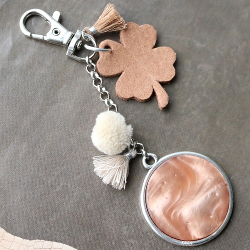 Design trendy keychains with new DQ leather pendants in clover shape. Use these lucky leaf’s in combination with Polaris Elements cabochons, tassels, pompoms and belcher chain. Use different colours in one keychain or mix different products in the same shades in one keychain.